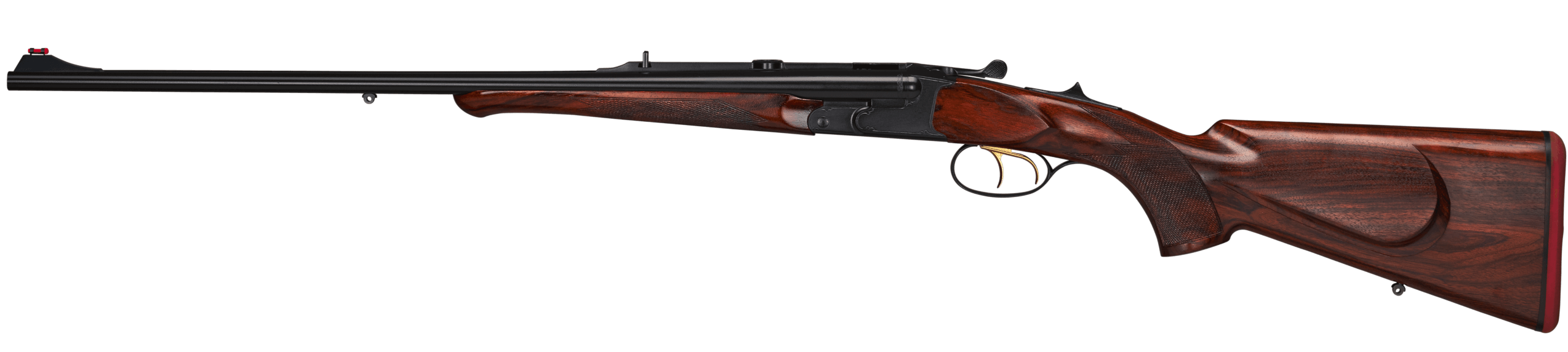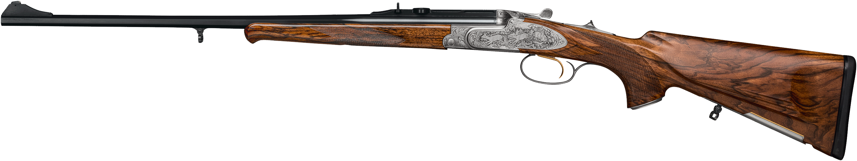 Perfection is essential. For us, as hunters and shooters, a single shot rifle is always something very special its simple beauty and versatility makes it the rifle for those precious moments in our lives that call us to the hunt. Krieghoff Combi-Cocking Device: Every Krieghoff has a Combi-Cocking Device and can be carried safely with its hammers uncocked. Just before a shot is fired, the ergonomically designed cocking slide is pushed forward with a smooth, practically noiseless motion. The gun is now cocked and ready to shoot. If the shot is not fired, you can uncock the gun again simply by pushing the cocking device all the way forward and letting it slide back. If the cocking slide I s left in the forward position, the gun is automatically re-cocked upon opening, the same as a self-cocking firearm. After the gun is reloaded and closed, it is ready to be fired immediately. Krieghoff’s combi Cocking Device offers important advantages without compromising safety when fast shooting is required, as when hunting big game. Krieghoff Universal-Trigger System: Firing quickly and intuitively to hit the target: hunting situations demand rapid, reliable responses. Only an optimized trigger enables you to make the most of every opportunity. A trigger pull weight being too heavy compromises accuracy. If the trigger pull weight is too low, inadvertent firing is a risk, due to icy fingers that have lost their feeling during a driven hunt in winter, for example. Krieghoff’s Universal Trigger System is set to release cleanly and precisely at 1200-1500 grams, without the risk of doubling. Precisely hitting the target over long distances demands a stable rest, a steady pulse and a trigger that releases precisely and with minimum resistance. That’s why the Krieghoff Universal Trigger System includes a set trigger. The standard automatic set (hair) trigger release make safe handling even easier. To uncock the gun, move the cocking slide to the rear position and it automatically releases the set trigger.