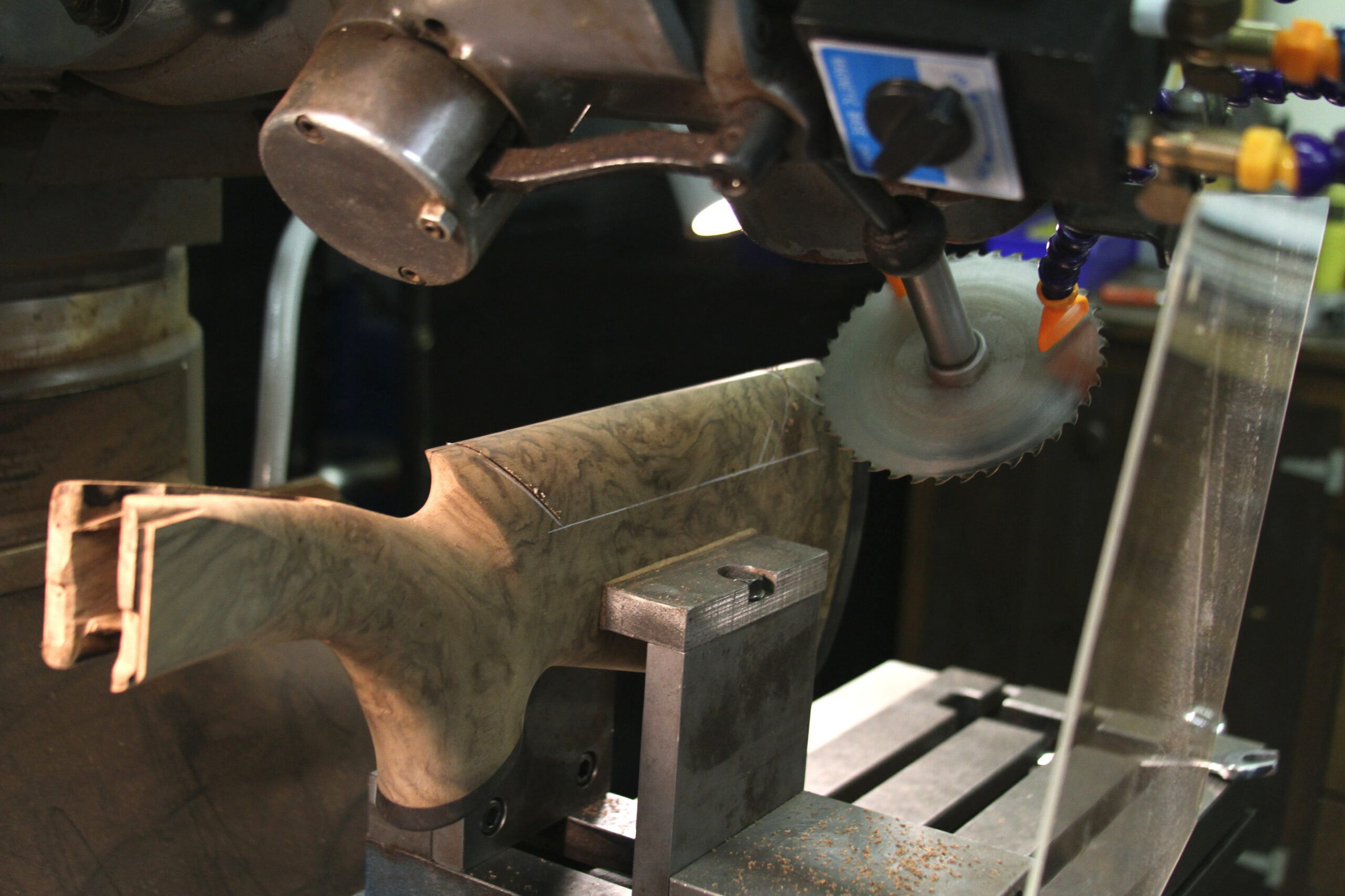The Custom Stock Process starts with the creation of the Try-Stock either by one of our stock fitters or a customer's previous stock. The next step is to select from our inventory of stock blanks of Turkish Walnut. Different grades, colors and figuring are available. We then cut the stock for the Duplicator, where the stock is rough-cut to dimension for the hand fitting. The stock is then cut and fitted to the receiver and iron before starting the checkering and finish work. After the stock is fitted to the gun the customer usually reviews the fit to make sure it feels right before we start the checkering and finish work. Once the checkering is complete the stock is ready for the final finish in either Tru-Oil Stock Oil or a durable Polyurethane finish.